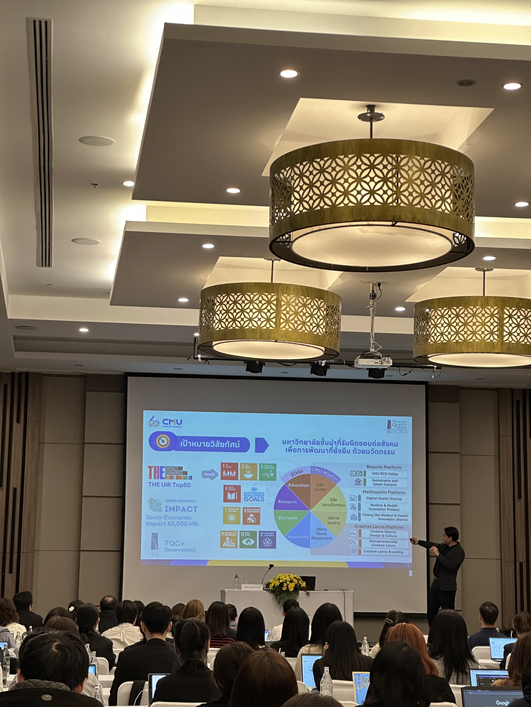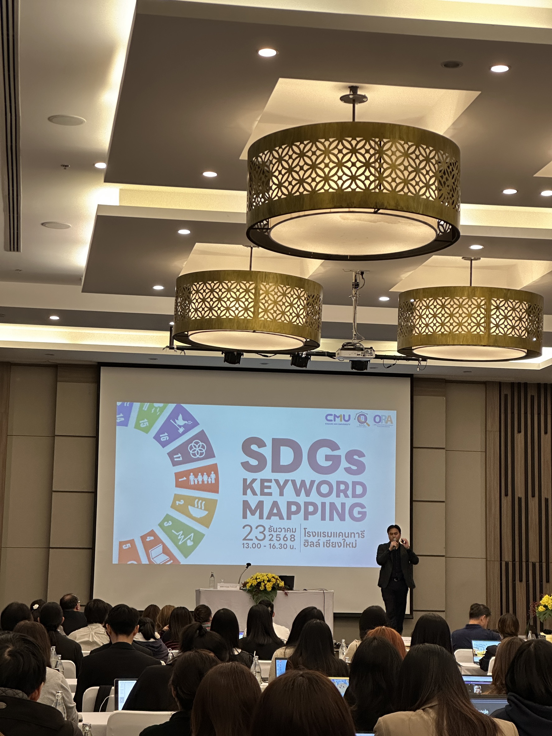 เมื่อวันที่ 23 ธันวาคม 2568 คณะสังคมศาสตร์ นำโดยผู้ช่วยศาสตราจารย์ ดร.ชนิดา สุวรรณประสิทธิ์ รองคณบดีฝ่ายวิจัยและวิเทศสัมพันธ์ และบุคลากรงานบริหารงานวิจัยฯ เข้าร่วมอบรมเชิงปฏิบัติการหัวข้อ “SDGs Keyword Mapping” ณ ห้องประชุมดอยหลวง โรงแรมแคนทารี ฮิลล์ จัดโดย สำนักงานบริหารงานวิจัย มหาวิทยาลัยเชียงใหม่ (สบว.) โดยได้รับเกียรติจาก ศ.ดร.อภินภัส รุจิวัตร ผู้อำนวยการสำนักงานบริหารงานวิจัย กล่าวต้อนรับและกล่าวเปิดกิจกรรมอบรม