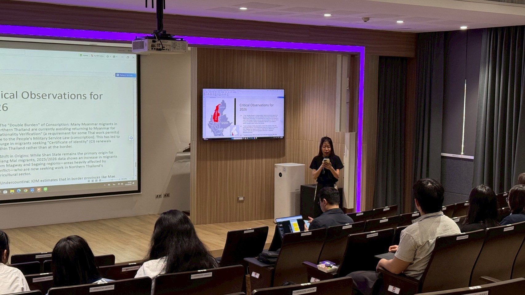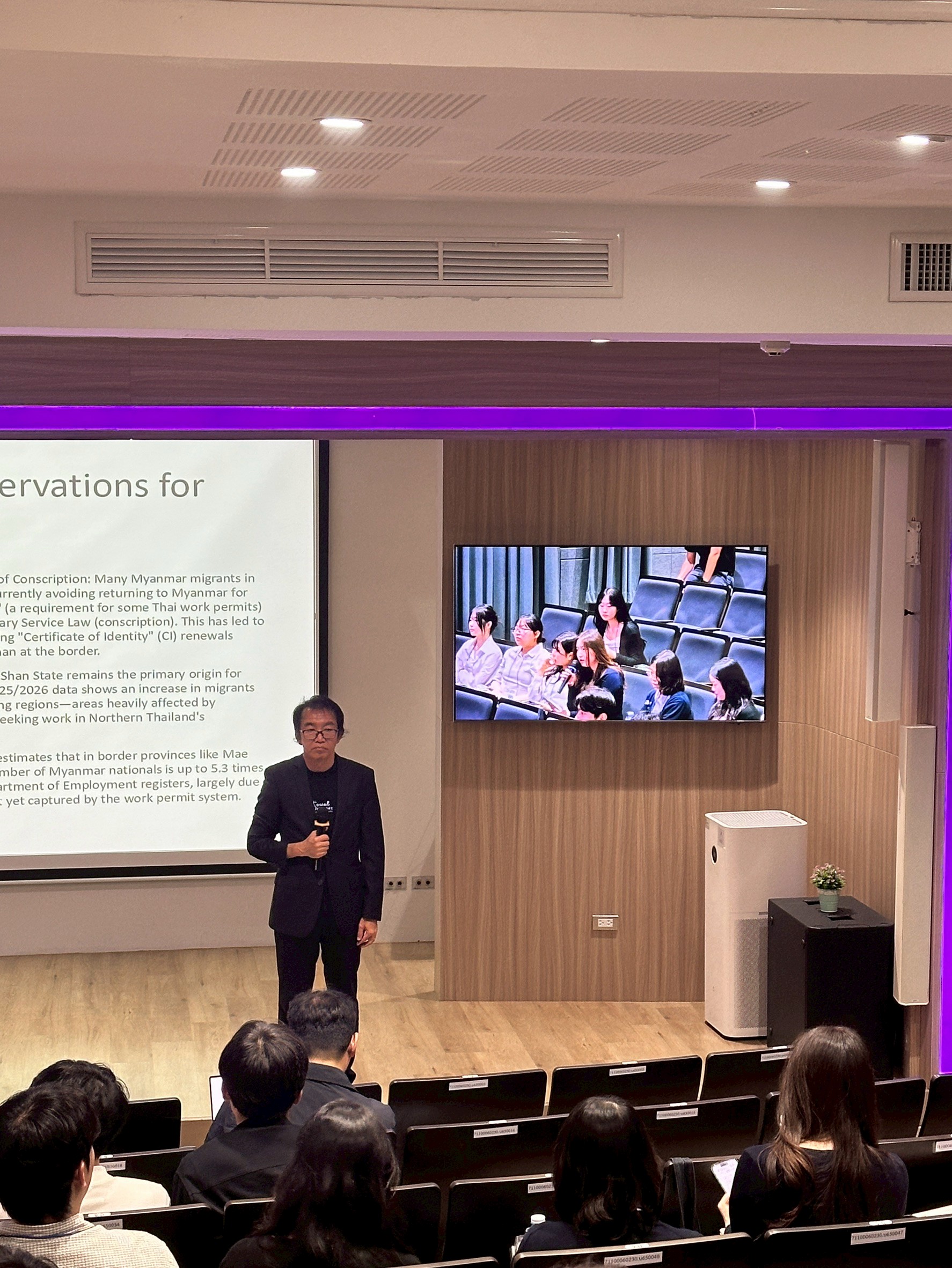 As part of the academic program, Associate Professor Dr. Wasan Panyagaew delivered a lecture and engaged in academic exchange on the topic “Cross-Border Migrant Workers from Myanmar in Chiang Mai.” The session created a shared learning platform for faculty members and students from both institutions. This was followed by student exchange activities involving 8 undergraduate students from the Faculty of Social Sciences, CMU, conducted in a friendly and interactive atmosphere.