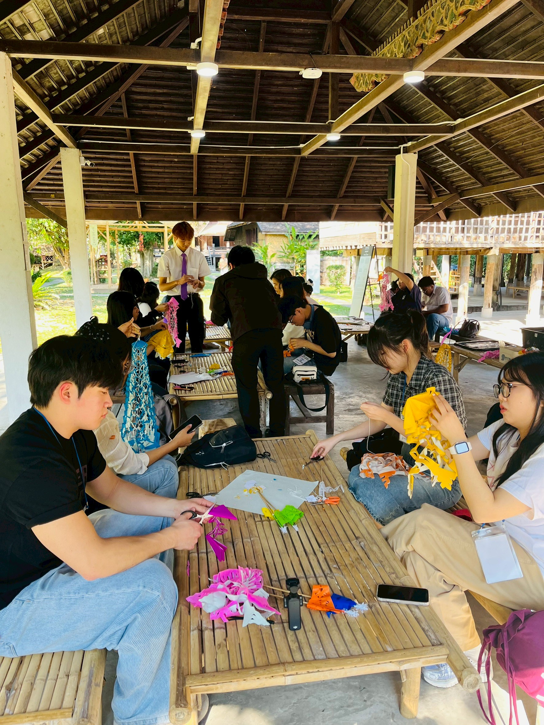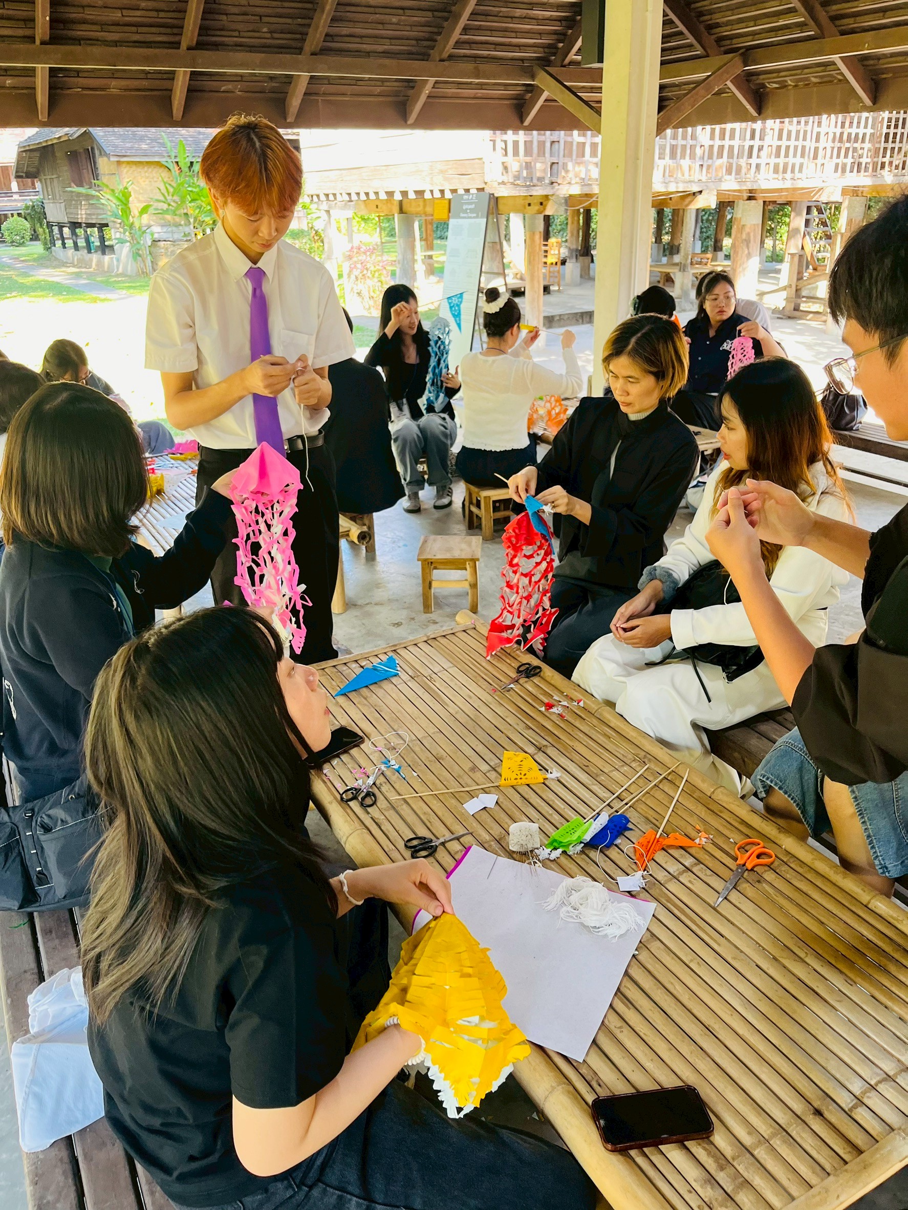 In the afternoon, the delegation participated in a “Tud Tung” (ตุง) Workshop, a traditional Lanna handicraft activity at the CMU Lanna House Museum. During the workshop, participants were introduced to the cultural significance of Tud Tung, decorative paper or fabric banners commonly used in Northern Thai religious ceremonies and community festivals. This interactive session encouraged cultural exchange, creativity, and appreciation of local craftsmanship, fostering a warm and engaging atmosphere among Thai and Korean students.