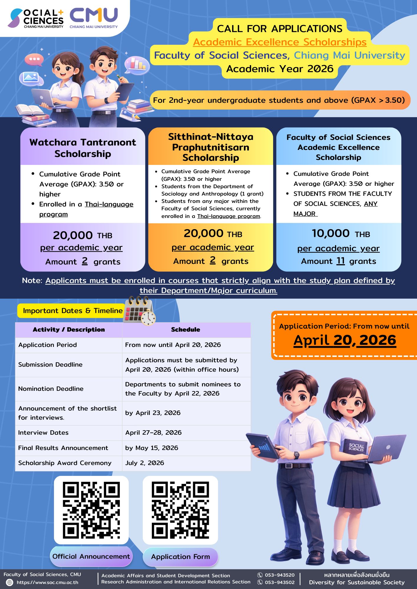 Call for Applications: เปิดรับสมัครทุนเรียนดีคณะสังคมศาสตร์ ปีการศึกษา 2569