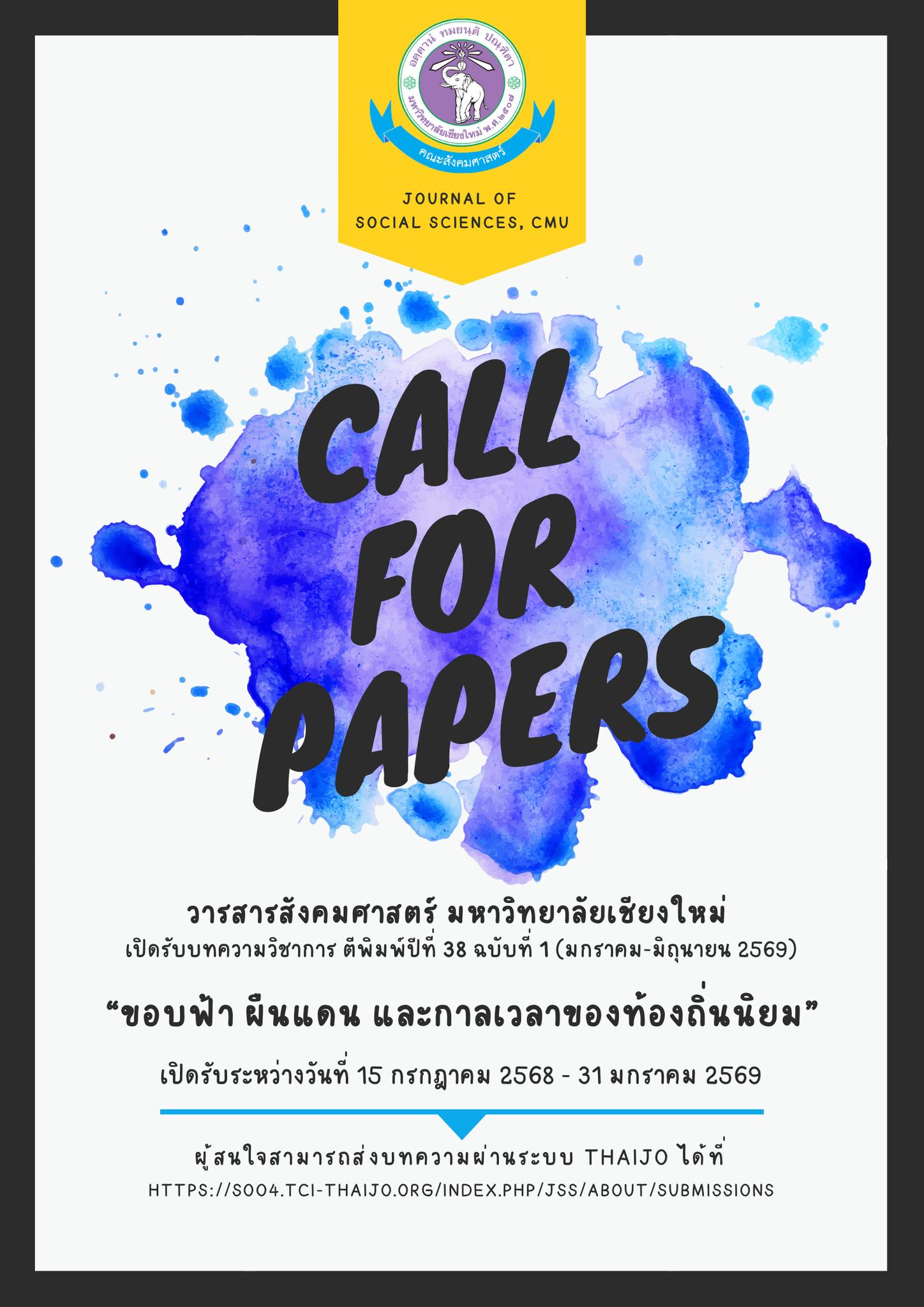 CALL FOR PAPERS วารสารสังคมศาสตร์ มช. ปีที่ 38 ฉบับที่ 1 (มกราคม-มิถุนายน 2569)